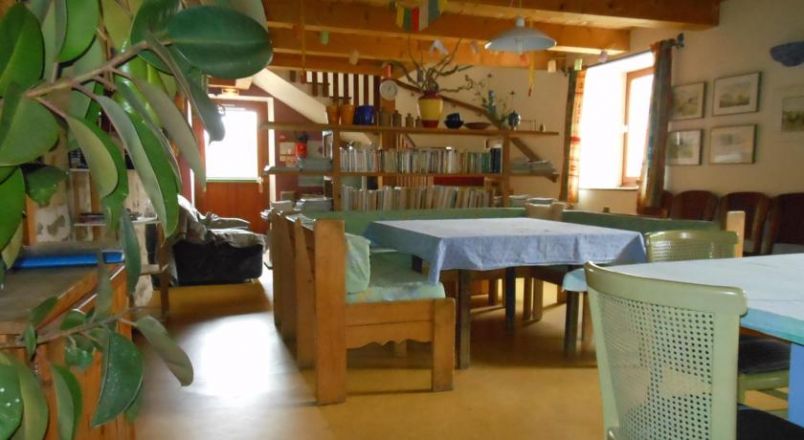 Guest rooms at La Maison Bleue have garden views and access to a shared bathroom and toilet. Guests have access to a large living room with exposed wooden beams and stone walls which is equipped with a TV, a library and a wood-burning stove.