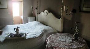 Rooms come with exposed wood-beamed ceilings and antique furnishings, as well as views of the surrounding hills.